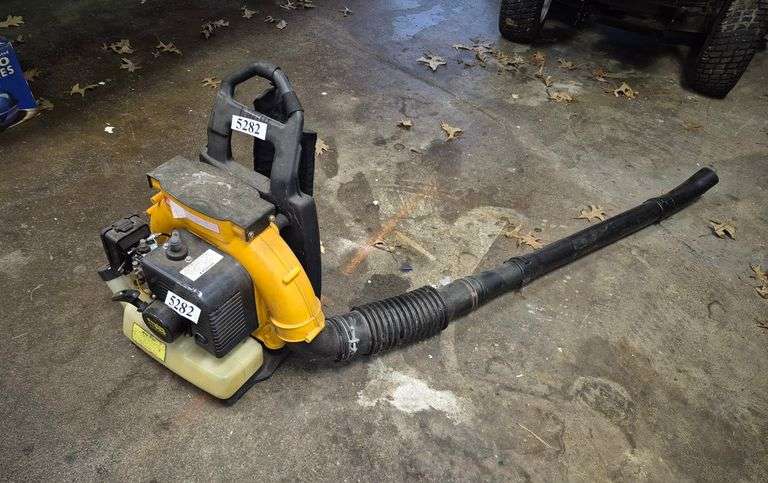 Poulan Pro BP400 backpack gas yard blower. Has good compression. Location: garage