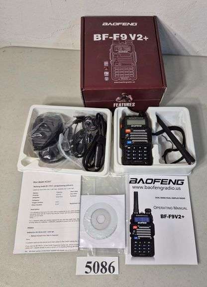 LOT 5086 - Baofeng BF-F9 V2+ handheld transceiver in box with mike, charger, manual, software, Etc.