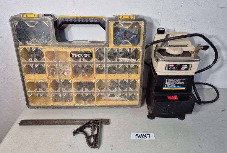 LOT 5087 - Wen wet stone machine, Stack-On Hardware organizer and hardware, square