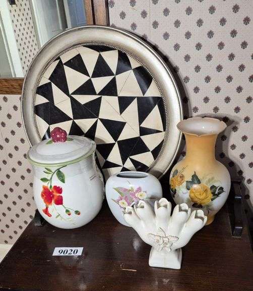 Plastic tray, home studio hand painted cookie jar, vases. 1st floor BR2