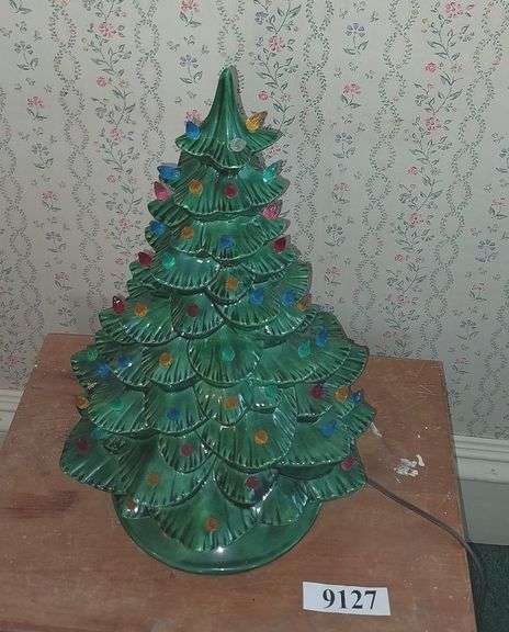 Green ceramic lighted Christmas tree. Location: 2nd floor BR 3