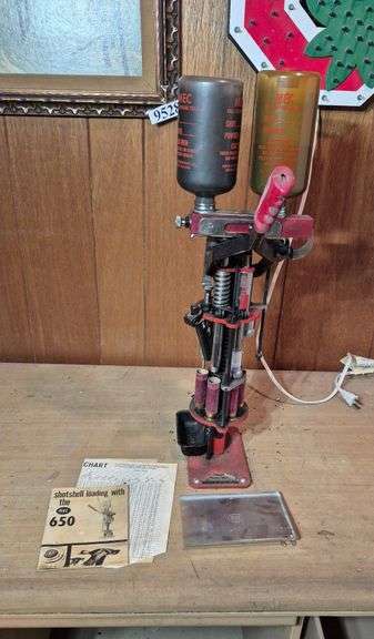 MEC model 650 reloading press with manual. Please note: These items have been in a damp basement and may have a smell and/or require cleaning. Location: main basement