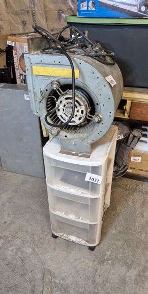 LOT 1031 - Squirrel cage fan, three drawer rolling plastic organizer.