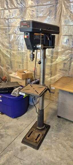 Craftsman floor model 15-in 1 HP drill press with tilt swivel table. Working well. Location: garage