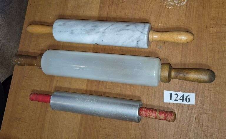 LOT 1246 - Aluminum, milk glass, and marble rolling pins