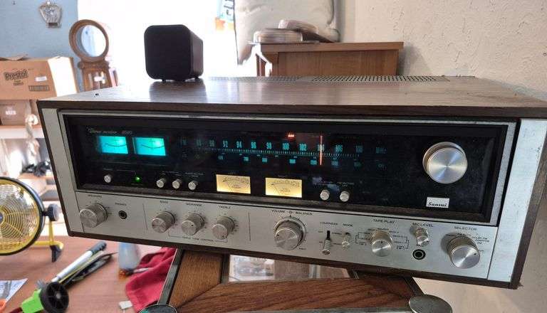 Vintage Sansui 8080 receiver. Powers on correctly, no speakers to test output. Location: living/dining room