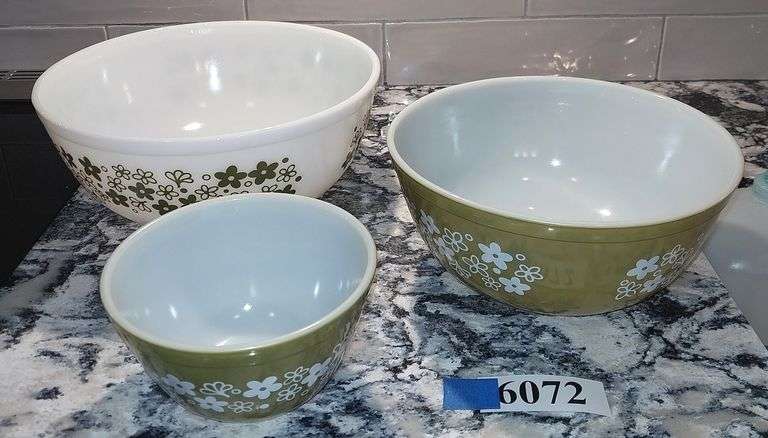 Set of 3 Pyrex nesting bowls Spring Blossom Pattern. Location: kitchen
