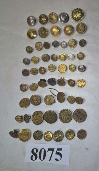 Antique / vintage buttons and studs, most if not all railroad related. Location: 2nd floor BR 1