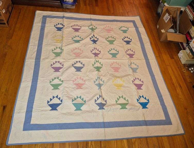 Hand stitched basket design quilt. 81.5"x74". Location: 2nd floor BR 1