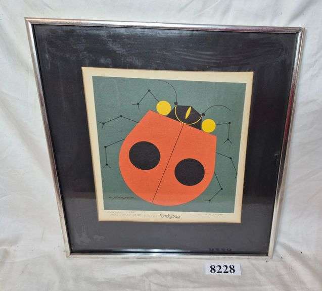 Framed Artist signed limited edition ladybug print by Charles Harper. Location: 2nd floor BR 1