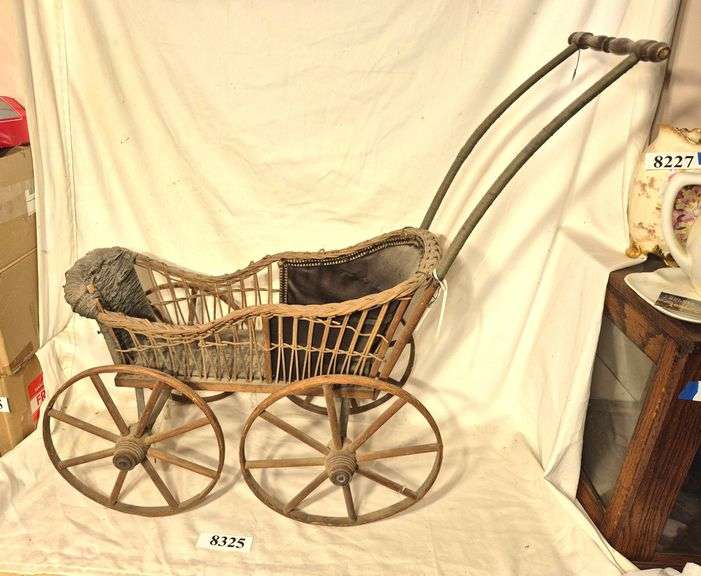 Antique wicker doll carriage. Location: 2nd floor bedroom 2